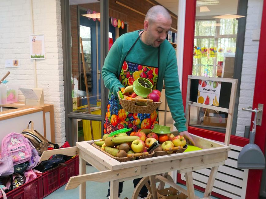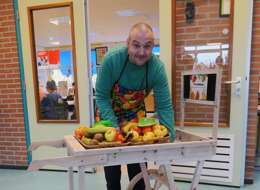 Vijf dagen per week rijdt Kevin met zijn zelfgebouwde fruitkar door de gangen van de kleine dorpsschool. Hij brengt het fruit langs de klassen, maakt praatjes en grapjes en deelt high fives uit. ‘De lach van die kinderen, daar doe je het voor,’ zegt hij met een twinkeling in zijn ogen. ‘Even contact, even gek doen – dat maakt hun dag, maar ook die van mij.’